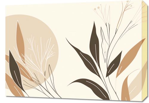 Plakat z serii minimalistyczne zatytułowany Splątana Wizja. Dzieło to przedstawia stylizowane rośliny w spokojnych, ziemiście ciepłych kolorach, tworząc poczucie spokoju i harmonii. Delikatne linie i płynne kształty przywodzą na myśl spokojny dzień na łonie natury. Plakat ma wyrafinowany i jednocześnie prosty charakter, który łączy w sobie elementy natury z minimalistycznym designem.Ten obraz będzie idealnym wyborem dla wnętrz, w których panuje atmosfera relaksu i spokoju, takich jak joga lub spa. Jego łagodne barwy i naturystyczne motywy są idealne do przestrzeni, gdzie priorytetem jest spokój umysłu i harmonia z otaczającym środowiskiem, takich jak salon, sypialnia, czy miejsce do medytacji.