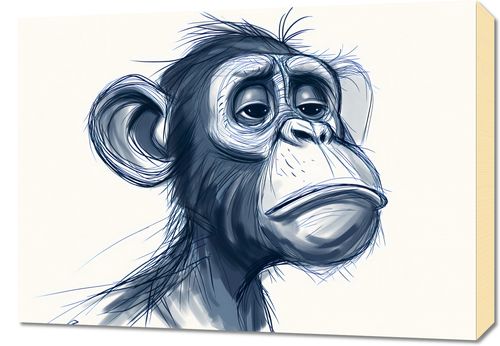 Obraz z serii wnętrza zatytułowany Zaduma. Prezentuje wyrazisty, monochromatyczny portret małpy z wyjątkowo ludzkim wyrazem twarzy, który wyraża głęboką refleksję. Subtelne detale i delikatne cieniowanie twarzy podkreślają emocjonalną głębię i osobowość przedstawionej postaci. Styl graficzny łączy w sobie elementy realizmu i kreskówki, co nadaje ilustracji lekkości, mimo jej poważnego nastroju. Ten obraz idealnie nadaje się do przestrzeni, które szukają dekoracji z charakterem, może to być salon, biblioteka, gabinet czy pokój młodzieżowy. Wprowadza on element introspekcji i jest zaproszeniem do kontemplacji, dodając wnętrzu głębi i wyjątkowego nastroju.