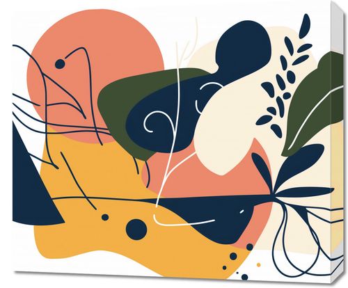 Obraz z serii minimalistyczne zatytułowany Dynamika Wizji. Grafika prezentuje żywą kompozycję abstrakcyjnych kształtów i linii, które tworzą energiczny, ale harmonijny obraz. Kolorystyka oscyluje wokół ciepłych tonów pomarańczu, żółci i bieli, z akcentami głębokiej zieleni, co nadaje pracy witalność i świeżość. Idealnie sprawdzi się jako ożywczy element w przestrzeniach minimalistycznych, takich jak nowoczesne biura, kreatywne studia, czy też domowe atelier. Może stanowić też centralny punkt w pomieszczeniach o stonowanej kolorystyce, przynosząc energię i ciepło do wnętrza. Wprowadzi dynamizm do każdej przestrzeni, zachowując przy tym poczucie elegancji i współczesnego designu.