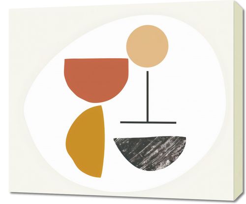 Obraz z serii boho zatytułowany Kompozycja Balans. Obraz oferuje spokojne połączenie abstrakcyjnych kształtów i delikatnych tekstur, które razem tworzą poczucie harmonii i równowagi. Stylizowane półkola i linie w odcieniach czerwieni, żółci i neutralnych barw mogą przywodzić na myśl elementy natury, takie jak kwiaty i słońce, zrównoważone przez surową teksturę przypominającą kamień lub ziemię. To dzieło doskonale nadaje się do przestrzeni, które cenią prostotę i wyciszenie, takie jak minimalistyczne salony, jasne gabinety, czy miejsca odpoczynku. Może wprowadzić element kontemplacyjny do przestrzeni, jednocześnie zachowując estetyczną klarowność i lekkość.