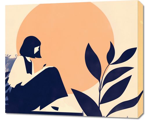 Obraz z serii minimalistyczne zatytułowany Kontemplacja. Ta delikatna grafika przedstawia sylwetkę kobiety w stanie kontemplacji na tle dużego, ciepłego, pomarańczowego słońca. Sylwetka jest otoczona przez proste, ale eleganckie czarne rośliny, co dodaje kompozycji spokojnego nastroju.Ten obraz jest idealny dla przestrzeni, które pragną wprowadzić momenty spokoju i refleksji. Będzie wspaniałym dodatkiem do sypialni, czytelni, kącików medytacyjnych czy nawet przestrzeni terapeutycznych.