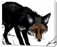 Obraz z serii abstrakcja zatytułowany Nieufny Lis. Przedstawia on realistycznie przedstawionego lisa w pozycji czujnej, gotowego do działania. Jego intensywne, przenikliwe spojrzenie i wyraz twarzy sugerują ostrożność i bystrość, typowe dla tych zwierząt. Ilustracja ma silne, dynamiczne pociągnięcia pędzla, które nadają teksturę futra, podkreślając dziki i nieujarzmiony charakter lisa. Tło jest minimalistyczne, co pozwala skupić całą uwagę na głównym bohaterze obrazu. Ten obraz doskonale wpasuje się w przestrzenie, które cenią sobie dzikość natury i chcą dodać element przyrody do wnętrza. Idealnie nadaje się do salonu, pokoju młodzieżowego lub jako elegancki element dekoracyjny w przestrzeni biurowej, inspirując do pozostania czujnym i gotowym na wyzwania codzienności.