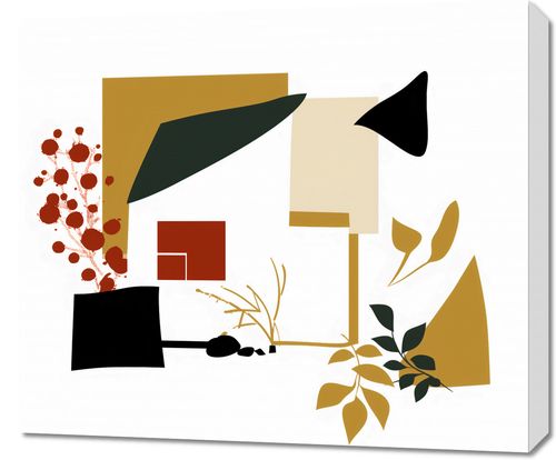 Obraz z serii minimalistyczne zatytułowany Wyłamany Ogród. Grafika ta łączy geometryczne kształty w odcieniach ochry, kremu i czerni z delikatnymi botanicznymi motywami. Kolaże kształtów tworzą kompozycję, która przypomina stylizowany ogród z elementami roślinnymi, takimi jak gałązki i liście, które dodają obrazowi życia i dynamiki. Idealnie sprawdzi się w przestrzeniach, które cenią sobie skandynawski minimalizm i geometryczne akcenty, takich jak proste biura, artystyczne kawiarnie lub stylowe przedpokoje. Dzięki swojej stonowanej palety kolorystycznej i eleganckiemu designowi, plakat będzie dobrze współgrał z wnętrzami o neutralnych kolorach i czystych liniach.
