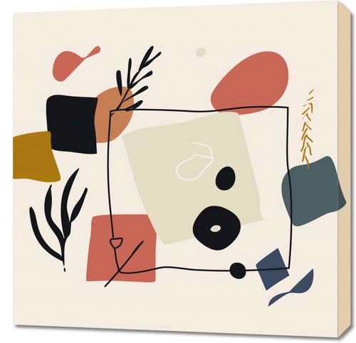 Obraz z serii minimalistyczne zatytułowany Abstrakcyjny Dialog. Ta grafika składa się z zespołu prostej, ale wyrafinowanej kolekcji kształtów i linii, tworząc dynamiczną, ale zbalansowaną kompozycję w ciepłej palecie kolorystycznej, w której dominują odcienie beżu, czerni, ochry i czerwieni.Obraz ten świetnie wkomponuje się w przestrzenie, gdzie dominuje nowoczesne wzornictwo i sztuka. Jest doskonały do minimalistycznych wnętrz biurowych lub mieszkalnych, które chcą dodać charakteru bez przytłaczania. Może także stanowić subtelny akcent w przestrzeniach kreatywnych, takich jak studia projektowe czy artystyczne kawiarnie, dodając im współczesnego uroku.