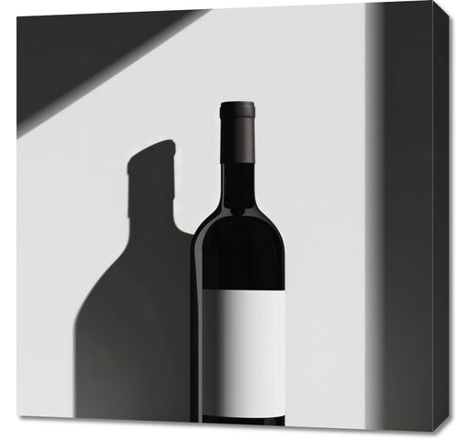 Obraz z serii wnętrza zatytułowany Butla Wina . Przedstawia minimalistyczny i elegancki wizerunek butelki wina. Kompozycja jest prosta i nowoczesna, z butelką umieszczoną na jasnym tle z ostrymi liniami cienia, które dodają głębi i zainteresowania wizualnego. Cienie są ostre i wyraźne, co sugeruje, że światło padające na butelkę jest mocne i bezpośrednie. Butelka ma klasyczną etykietę bez żadnych detali, co nadaje całemu obrazowi wyrafinowany charakter. Użycie kontrastu między ciemnymi tonami butelki a jasnym tłem podkreśla formę i sylwetkę przedmiotu, skupiając uwagę na jego zarysie. Taki obraz mógłby być świetnym dodatkiem do wnętrz urządzonych w stylu minimalistycznym lub współczesnym, a także pasowałby do przestrzeni, gdzie celebruje się kulturę wina.