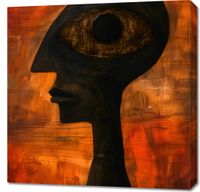Obraz z serii abstrakcja zatytułowany Głęboki Wgląd przedstawia enigmatyczną sylwetkę o ludzkiej formie z dominującym, przeskalowanym okiem w miejscu głowy, wpatrującym się w widza z niezwykłą intensywnością. Tło obrazu jest abstrakcyjne, z bogatymi pociągnięciami pędzla w ciepłych odcieniach czerwieni i pomarańczy, sugerujące płomienne otoczenie lub burzliwe emocje. Sylwetka postaci jest zarysowana w głębokim czernią, co kontrastuje z jaskrawym tłem, a tekstura przypominająca sieć w obrębie oka może symbolizować skomplikowaną sieć ludzkich doświadczeń i percepcji. Dzieło to może wywoływać rozważania na temat ludzkiej świadomości i głębszego znaczenia bycia obserwatorem. Ten obraz będzie pasował do przestrzeni, które cenią głęboką myśl i filozoficzne dyskusje, takich jak biblioteki, studia artystyczne lub prywatne gabinety.
