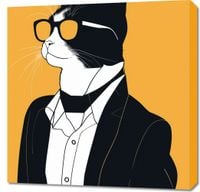Obraz z serii abstrakcja zatytułowany Jegomość to stylizowany portret kota w ludzkim ubiorze. Charakterystyczne, czarno-białe ubarwienie kota zostało podkreślone przez elegancki, czarny garnitur z białą koszulą oraz modnymi, żółtymi okularami, które dodają postaci wyrafinowanego uroku. Tło w intensywnym odcieniu musztardy idealnie komponuje się z całością, nadając plakatowi ciepły i wyrazisty charakter. Silny profil kota, wyraźne linie i minimalistyczne podejście do szczegółów czynią ten obraz zarówno zabawnym, jak i eleganckim, idealnym do przestrzeni, które cenią sobie humor i styl, takich jak nowoczesne biura, domowe biblioteki czy saloniki.