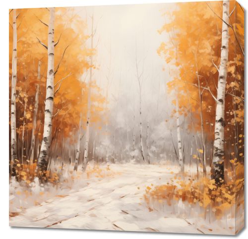 Obraz z serii pejzaże zatytułowany Jesienne Brzozy. Scena przedstawia ścieżkę snującą się przez las brzozowy, którego złoto-żółte liście są symbolem przemijania i naturalnego piękna jesieni. Delikatne pnie drzew z charakterystyczną białą korą wyłaniają się z mglistego tła, tworząc poczucie głębi i spokoju. Gra światła i cienia nadaje kompozycji miękkości, a spadające liście dodają dynamiki. Ten obraz jest idealny do przestrzeni pełnych ciepła i spokoju, takich jak salony, pokoje relaksacyjne, czy miejsca oczekiwania w gabinetach terapeutycznych, gdzie może wprowadzać atmosferę kontemplacji i uspokojenia.