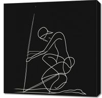 Obraz z serii wnętrza zatytułowany Linia. Ta sztuka przedstawia pojedynczą, białą linijką nakreślony zarys postaci ludzkiej w dynamicznej i wyrazistej pozie. Czystość linii na czarnym tle tworzy silny kontrast, który przyciąga wzrok i pobudza wyobraźnię, pozostawiając wiele miejsca dla interpretacji emocji i ruchu. Obraz jest przykładem, jak minimalizm w sztuce może przekazywać złożone i głębokie przesłanie, sprawiając, że jest to idealny wybór dla przestrzeni współczesnych, od galerii po minimalistyczne domowe wnętrza, które cenią sobie elegancję i prostotę.