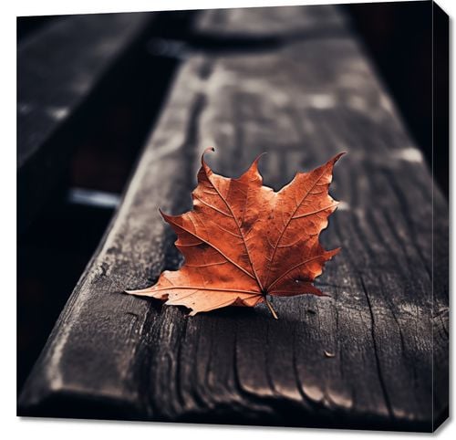 Obraz z serii natura zatytułowany Pojedynczy Liść. Ten obraz przedstawia pojedynczy, jasnobrązowy liść klonu, spoczywający na ciemnym, drewnianym tle ławki parkowej. Głębokie, nasycone kolory i wyraźny kontrast między liściem a ciemnym tłem, wywołują uczucie intymności i refleksji. Idealny dla przestrzeni, które chcą oddać hołd zmienności sezonów i subtelnemu pięknu natury, ten plakat wprowadza ciepło i spokój do każdego domu, biura, czy miejsca publicznego, zachęcając do chwili zadumy i spokoju.