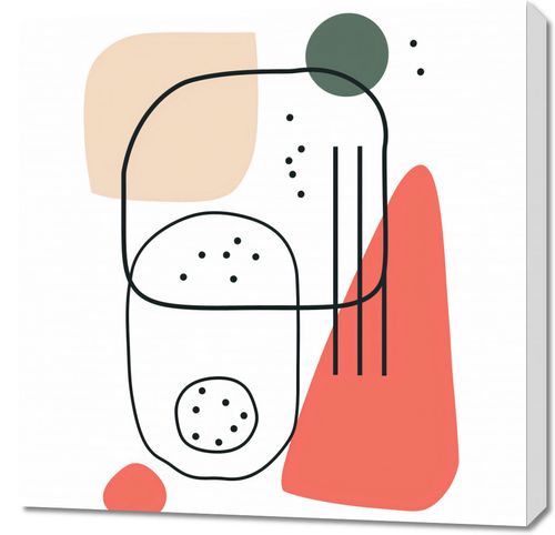 Obraz z serii boho zatytułowany Przestrzenność.Na tym obrazie widzimy odważne połączenie abstrakcyjnych kształtów, linearnych elementów i zróżnicowanych tekstur. Kompozycja składa się z okrągłych i kanciastych form w różnych rozmiarach i kolorach, takich jak stonowany beż, głęboka czerwień i neutralna zieleń. Dynamiczne linie i kropki tworzą wrażenie ruchu i głębi, a całość wydaje się być równocześnie chaotyczna i spójna. Obraz ten wprowadzi do wnętrza nowoczesność i artystyczny nieład, będąc idealnym akcentem w przestrzeniach, które pragną skupić uwagę na indywidualnych elementach dekoracyjnych. Idealnie nadaje się do minimalistycznych przestrzeni, które cenią sobie zarówno prostotę, jak i silne wizualne akcenty.