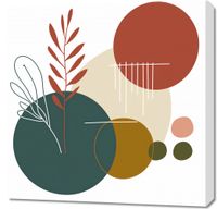 Obraz z serii minimalistyczne zatytułowany Rytm Warkotu. Ta grafika przedstawia stylizowane rośliny w ciepłych odcieniach czerwieni i zieleni, kontrastujące z geometrycznymi kształtami kół w spokojnych barwach beżu, żółci i głębokiej zieleni. Linie pionowe, wydające się być jak deszcz, dodają dynamiki i lekkości kompozycji.Ten obraz będzie się pięknie prezentować w przestrzeniach, które celebrują spokój i naturę. Doskonale wpasuje się w estetykę zen, ekologicznych wnętrz, czy w każdym pomieszczeniu, które ma na celu wprowadzenie elementów natury do domowego otoczenia. Będzie to świetny wybór dla tych, którzy szukają dekoracji ściennych do jasnych, przestronnych pomieszczeń, takich jak salony, jadalnie czy przestrzenie do medytacji.