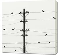 Obraz z serii pejzaże zatytułowany Symfonia na Drutach. Prezentuje on prostotę miejskiego krajobrazu, gdzie ptaki siedzą równomiernie rozmieszczone na przewodach telefonicznych. Czyste tło i sylwetki ptaków na linii energetycznej tworzą graficzny i rytmiczny wzór, który jest zarówno spokojny, jak i dynamiczny. Ten obraz to hołd dla nieoczekiwanej urody w codziennych scenach miejskich, idealny dla tych, którzy cenią sobie prostotę i nowoczesny design. Pasuje do nowoczesnych wnętrz biurowych, minimalistycznych salonów oraz wszędzie tam, gdzie sztuka ma za zadanie wprowadzać element spokoju i porządku.