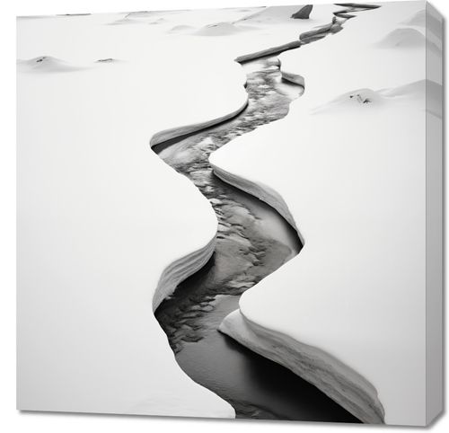 Obraz z kolekcji pejzaże zatytułowany Meandry Mrozu. Ten obraz przedstawia sinący lodowiec, którego szczeliny przecinają śnieżnobiałą powierzchnię, tworząc naturalne dzieło sztuki. Monochromatyczna paleta barw, gdzie biel śniegu kontrastuje z głębokim czerniami wód lodowcowych, przemawia do wyobraźni i wywołuje uczucie surowości oraz majestatu natury. Doskonały do wnętrz o minimalistycznym designie lub jako mocny wizualny akcent w przestrzeniach takich jak salony, biura i lobby hotelowe, gdzie może inspirować do refleksji nad pięknem i siłą przyrody.