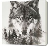 Obraz z serii natura zatytułowany Wilczy Duch Lasu przedstawia majestatyczną głowę wilka, której intensywne, przenikliwe oczy wydają się patrzeć prosto w duszę widza. Tło w odcieniach bieli i szarości tworzy iluzję mgły, która otula sylwetki drzew i zarysy gór. Ponad wilkiem unosi się pełnia księżyca, która rozświetla nocne niebo, dodając kompozycji tajemniczego i mistycznego charakteru. Ten obraz idealnie wpasuje się w przestrzeń miłośnika natury, wzbogacając każde pomieszczenie o element dzikiego i surowego piękna. Dzięki swojej symbolicznej sile i głębi będzie nie tylko dekoracją, ale również źródłem inspiracji i kontemplacji. Idealnie sprawdzi się w salonach, przestrzeniach wspólnych, bibliotekach, a także jako punkt centralny w galerii sztuki czy prywatnym biurze.