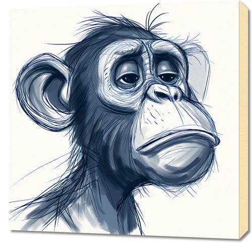 Obraz z serii wnętrza zatytułowany Zaduma. Prezentuje wyrazisty, monochromatyczny portret małpy z wyjątkowo ludzkim wyrazem twarzy, który wyraża głęboką refleksję. Subtelne detale i delikatne cieniowanie twarzy podkreślają emocjonalną głębię i osobowość przedstawionej postaci. Styl graficzny łączy w sobie elementy realizmu i kreskówki, co nadaje ilustracji lekkości, mimo jej poważnego nastroju. Ten obraz idealnie nadaje się do przestrzeni, które szukają dekoracji z charakterem, może to być salon, biblioteka, gabinet czy pokój młodzieżowy. Wprowadza on element introspekcji i jest zaproszeniem do kontemplacji, dodając wnętrzu głębi i wyjątkowego nastroju.