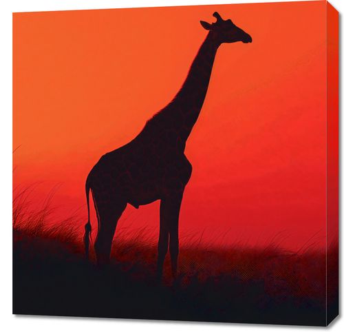 Obraz z serii natura zatytułowany Żyrafa w Czerni. Przedstawia majestatyczną sylwetkę żyrafy na tle zachodzącego słońca. Intensywny czerwony kolor nieba tworzy dramatyczne tło dla czarnej sylwetki, która wyłania się wśród wysokich traw sawanny. Subtelny gradient czerwieni przywołuje ciepło afrykańskiego słońca i dzikość naturalnego środowiska. Obraz idealnie oddaje esencję dzikiej przyrody i będzie pięknym dodatkiem do każdego wnętrza, przyciągając wzrok i inspirując do marzeń o podróżach. Doskonale pasuje do salonów w stylu etno, przestrzeni publicznych związanych z podróżami oraz pokojów o tematyce przyrodniczej.