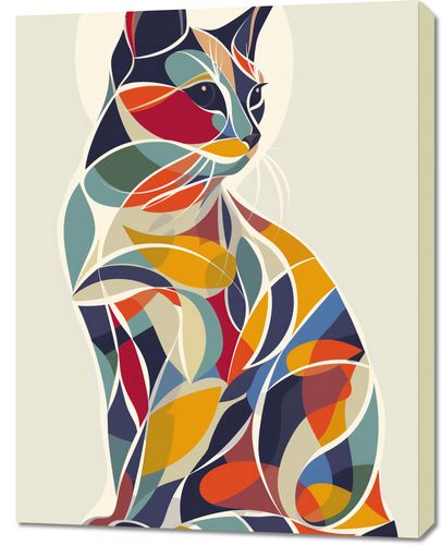 Obraz z serii minimalistyczne zatytułowany Kalejdoskopowy Kot to eksplozja barw i kształtów, która przenosi klasyczny wizerunek kota w świat abstrakcyjnej sztuki. Przepełnione ciepłymi odcieniami żółci, pomarańczy, czerwieni oraz zbalansowanymi akcentami zieleni i błękitu, jego formy zwijają się i przekręcają, tworząc płynną, prawie hipnotyzującą kompozycję. Kot, przedstawiony w profilu, ma intensywne spojrzenie, które zdaje się obserwować otaczający go kalejdoskop życia. Ten obraz doda dynamiki i koloru każdej przestrzeni, idealny do nowoczesnych mieszkań i przestrzeni kreatywnych, gdzie może stać się centrum uwagi i tematem do rozmów.