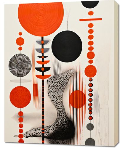 Obraz z serii abstrakcja zatytułowany Kontrastowy Kosmos. Fascynująca gra kontrastujących kolorów i kształtów, gdzie czerwone koła ożywiają monochromatyczne tło. Finezyjne tekstury i linie tworzą abstrakcyjny krajobraz przypominający kosmiczną przestrzeń. Czarne i czerwone elementy kontrastują ze sobą, dodając głębokości i wymiaru do kompozycji. Świetnie sprawdzi się w nowoczesnych biurach, galeriach sztuki oraz minimalistycznych salonach.