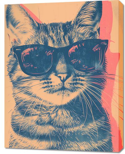 Obraz z serii abstrakcja zatytułowany Trendsetter. Na obrazie widzimy portret kota w stylowych okularach przeciwsłonecznych, z refleksami na soczewkach, które dodają mu tajemniczego uroku. Tło w odcieniach ciepłego różu i chłodnego niebieskiego nadaje kompozycji wibracyjny, niemal retro charakter. Grafika ta jest zabawnym, lecz wyrafinowanym akcentem dla każdego wnętrza, od domowego biura po salon. Idealny dla miłośników zwierząt i mody, a także jako lekki, humorystyczny element w przestrzeniach kreatywnych i galeriach sztuki.