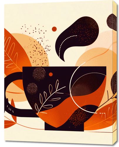 Obraz z serii minimalistyczne zatytułowany Wachlarz Ciepła. Ta kompozycja charakteryzuje się bogatymi, ciepłymi barwami jesieni, łącząc brązy, pomarańcze i czernie z delikatnymi liśćmi i abstrakcyjnymi kształtami, co razem tworzy dynamiczną, ale harmonijną całość.Ten obraz będzie idealnym dodatkiem do przestrzeni, które chcą wnieść trochę ciepła i artystycznego charakteru do swojego wnętrza. Jego ziemiste barwy i wzory mogą przyciągnąć oko w salonie, jadalni, czy współczesnej sypialni, wnioskując poczucie komfortu i naturalnego piękna.