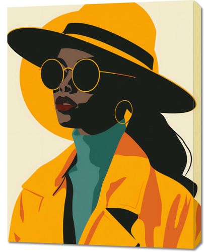Obraz z serii abstrakcja zatytułowany Żółta Stylowość. Grafika ta portretuje postać kobiety w stylowym, żółtym kapeluszu i okularach przeciwsłonecznych, którego wyraziste linie i bloki kolorów tworzą silny, graficzny obraz. Odcienie żółci, połączone z subtelnymi akcentami zieleni i czerni, nadają kompozycji nowoczesnego i śmiałego charakteru. Postać emanuje pewnością siebie i wyrafinowaniem, co czyni ten obraz idealnym elementem dekoracyjnym dla przestrzeni o współczesnym designie, a także dla miejsca, które chce dodać akcent miejskiej elegancji. Idealny dla salonów modowych, gabinetów kosmetycznych czy nowoczesnych biur kreatywnych.