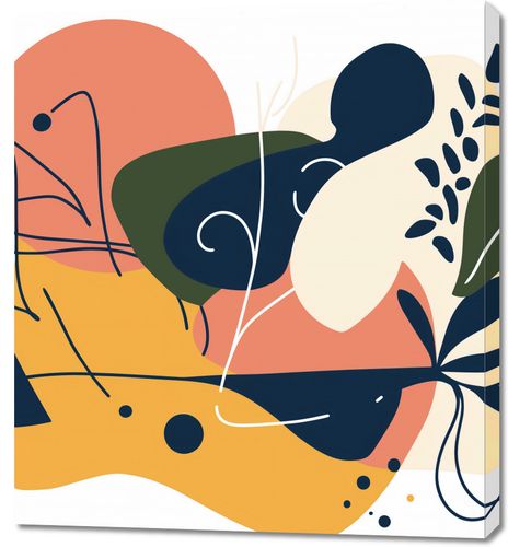 Obraz z serii minimalistyczne zatytułowany Dynamika Wizji. Grafika prezentuje żywą kompozycję abstrakcyjnych kształtów i linii, które tworzą energiczny, ale harmonijny obraz. Kolorystyka oscyluje wokół ciepłych tonów pomarańczu, żółci i bieli, z akcentami głębokiej zieleni, co nadaje pracy witalność i świeżość. Idealnie sprawdzi się jako ożywczy element w przestrzeniach minimalistycznych, takich jak nowoczesne biura, kreatywne studia, czy też domowe atelier. Może stanowić też centralny punkt w pomieszczeniach o stonowanej kolorystyce, przynosząc energię i ciepło do wnętrza. Wprowadzi dynamizm do każdej przestrzeni, zachowując przy tym poczucie elegancji i współczesnego designu.