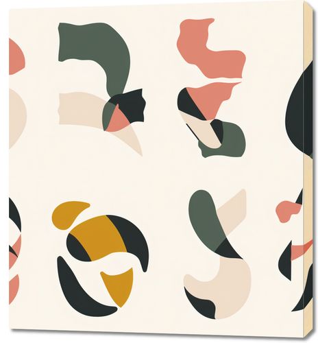 Obraz z serii minimalistyczne zatytułowany Improwizacja. Przedstawia on zestaw abstrakcyjnych, organicznych kształtów i płynnych linii w ciepłej palecie kolorystycznej, łączącej odcienie beżu, czerni, pomarańczy i zielonego. Każdy z elementów ma swoją unikatową formę i kolor, tworząc wrażenie różnorodności i dynamiki.Ten nowoczesny obraz będzie doskonałym dodatkiem do minimalistycznych, a zarazem odważnych wnętrz. Jego abstrakcyjny charakter może być wspaniałym tematem do rozmów w salonie lub ożywiającym elementem w biurowej przestrzeni. Może także dodać artystycznego akcentu w galerii domowej lub przestrzeni twórczej.