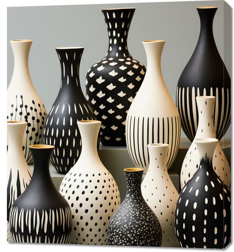 Obraz z serii wnętrza zatytułowany Kontrast i Harmonia. Eleganckie wazony w subtelnych odcieniach bieli i intensywnej czerni stoją dumnie na szarości tła. Geometryczne i abstrakcyjne wzory, które zdobią te wazony, przypominają tętniącą życiem tańczącą symfonię. Kropki, linie i formy tworzą intrygującą kompozycję, która przyciąga wzrok i dodaje wnętrzom wyjątkowej głębi. Subtelna gra świateł i cieni, a także kontrast między monochromatycznymi barwami, dodaje tej kolekcji odrobinę tajemniczości. Będzie to idealne dopełnienie zarówno dla nowoczesnych przestrzeni loftowych, jak i eleganckich salonów z naciskiem na design. Ten wyjątkowy plakat doskonale odnajdzie się w galeriach sztuki oraz w luksusowych hotelach.