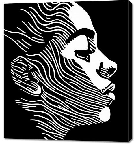 Obraz z serii abstrakcja zatytułowany Linie Wyrazu. Na grafice widzimy minimalistyczny portret profilu ludzkiego, wykonany jedynie za pomocą białych linii na czarnym tle. Obraz jest przykładem sztuki linii, gdzie proste pociągnięcia tworzą złożone i wyrafinowane detale twarzy, w tym oko, nos, usta, oraz konturów policzków. Silny kontrast między czernią a bielą podkreśla dramatyzm i głębię kompozycji, co czyni ten obraz doskonałym wyborem dla nowoczesnych, minimalistycznych przestrzeni, które pragną nadać swojemu wnętrzu charakteru przy użyciu prostych, lecz mocnych elementów wizualnych.
