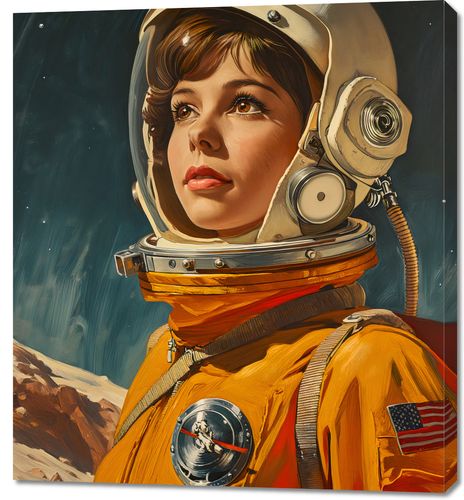Obraz z serii pop art zatytułowany Pionierka Kosmosu. przedstawia kobietę astronautkę w klasycznym skafandrze kosmicznym, z wizjerem odbijającym gwiazdy i odległą planetę. Jej spojrzenie jest pełne determinacji i odwagi, a zarazem wyraża ciekawość i zadumę nad niewiadomymi, które czekają w głębi kosmosu. Barwy plakatu - bogate złoto skafandra i głęboka czerń przestrzeni kosmicznej - tworzą kontrast, który podkreśla odwagę i piękno eksploracji kosmicznej. Obraz ten jest hołdem dla wszystkich kobiet w historii podboju kosmosu i będzie doskonałą ozdobą dla każdej przestrzeni inspirowanej nauką, od domowych biur po edukacyjne instytucje, a także jako symbol siły i inspiracji dla pokoi młodzieżowych.