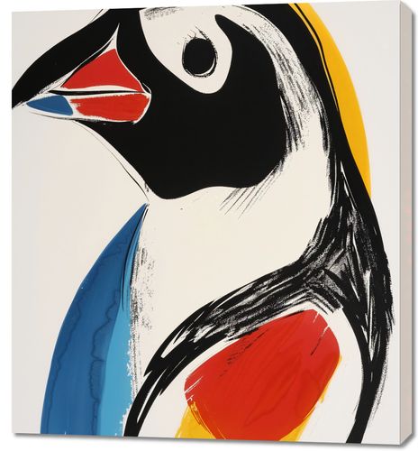 Obraz z serii abstrakcja zatytułowany Portret Ptaka. Prezentuje on stylizowany obraz ptaka, być może maskonura, z charakterystycznym dużym okiem i kolorowym dziobem. Artysta użył odważnych, geometrycznych kształtów i intensywnych barw, aby uchwycić esencję ptaka w prosty, ale wpadający w oko sposób. Duże bloki czerni, błękitu, czerwieni i żółci są zastosowane z lekkością pociągnięć pędzla, co nadaje dziełu lekkości i dynamiki. Ten obraz jest świadectwem tego, jak minimalizm może w pełni wyrazić piękno natury, będąc jednocześnie współczesnym i śmiałym elementem w każdym wnętrzu, od domowych przestrzeni po nowoczesne biura.