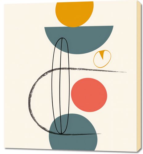 Obraz z serii boho zatytułowany Równe Kompozycje.Obraz ten czerpie z koncepcji równowagi w sztuce, ukazując złożone kształty i kolory. Kulista forma w odcieniu musztardowym spoczywa na większej, niebieskawej powierzchni, a wszystko to jest podparte przez delikatne linie i kształty, które zdają się być w ruchu. Malutkie serce w odcieniu pomarańczowym dodaje delikatnego akcentu, a ciepłe i spokojne kolory komponują się w wizualną poezję. Ten obraz wniesie harmonię i subtelny dynamizm do każdego nowoczesnego wnętrza, pasując do przestrzeni, które cenią sobie prostotę i wyrafinowanie. Jego uniwersalność sprawdzi się w domowych salonach, biurach, a także w przestrzeniach publicznych takich jak kawiarnie czy lobby, gdzie sztuka ma za zadanie uspokajać i inspirować.