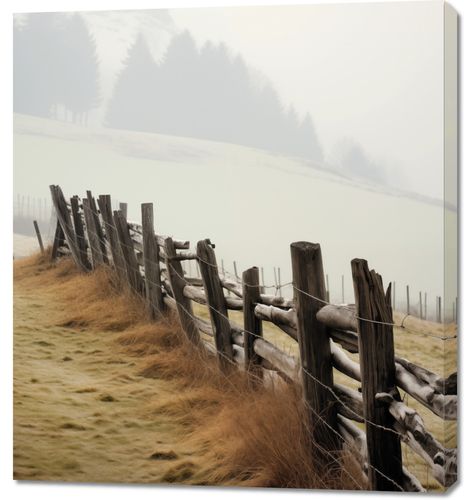 Obraz z serii pejzaże zatytułowany Spowity Mgłą. Ta melancholijna i pełna spokoju kompozycja przedstawia rustykalne drewniane ogrodzenie, które prowadzi wzrok wzdłuż ścieżki zanurzonej we mgle. Miękkie, neutralne kolory sceny i subtelne kontury drzew na tle zamglonej przestrzeni przekazują uczucie ciszy i zadumy. Obraz ten idealnie oddaje atmosferę spokojnej, mglistej porannej chwili na wsi, co czyni go doskonałym wyborem dla wnętrz o ciepłej, domowej atmosferze, w przestrzeniach medytacyjnych lub jako ukojenie w dynamicznych miejskich środowiskach. To także świetna propozycja dla miłośników sielskich, pastoralnych widoków.