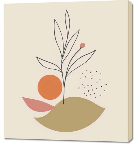 Plakat z serii boho zatytułowany Subtelna Naturaleza. Prezentuje on minimalistyczny obraz rośliny na tle geometrycznych kształtów. Złagodzone barwy, takie jak musztardowy, koralowy i pastelowy róż, połączone z akcentami czerni i kremowego tła, tworzą obraz pełen harmonii i subtelnego piękna. Niemal poetycka kompozycja sugeruje spokój natury, z rośliną osadzoną w sercu plakatu, która wydaje się być uosobieniem wzrostu i spokoju.Ten obraz jest idealny dla wnętrz w stylu skandynawskim, boho, czy też modernistycznym, dodając lekkości i organicznego charakteru przestrzeni. Doskonale sprawdzi się w salonie, sypialni, a nawet w przestrzeni biurowej, przynosząc element spokoju i zrównoważonej estetyki.