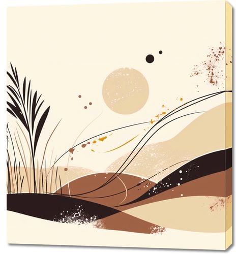 Obraz z serii minimalistycznej zatytułowany Szept Gwizdu. Widać na nim stylizowaną kompozycję z trawami i kształtami, które mogą przywoływać na myśl górskie krajobrazy. Barwy są ciepłe i naturalne, z dominującymi beżami, brązami oraz akcentami w kolorze terakoty.Ten plakat doskonale uzupełni wnętrza w stylu boho, skandynawskim, jak również te o bardziej rustykalnym czy naturalnym charakterze. Jego spokojna paleta kolorów i subtelna grafika sprawią, że będzie idealnym dodatkiem do sypialni lub salonu, wprowadzając atmosferę relaksu i spokoju.