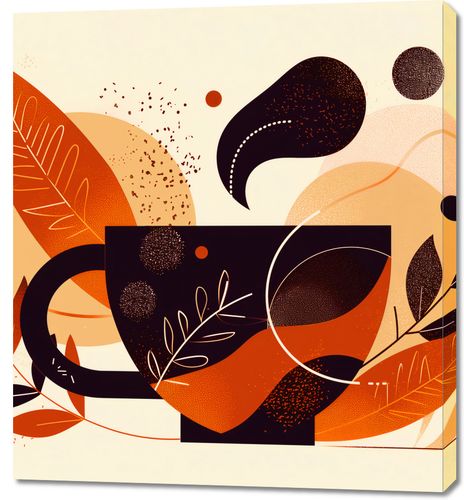 Obraz z serii minimalistyczne zatytułowany Wachlarz Ciepła. Ta kompozycja charakteryzuje się bogatymi, ciepłymi barwami jesieni, łącząc brązy, pomarańcze i czernie z delikatnymi liśćmi i abstrakcyjnymi kształtami, co razem tworzy dynamiczną, ale harmonijną całość.Ten obraz będzie idealnym dodatkiem do przestrzeni, które chcą wnieść trochę ciepła i artystycznego charakteru do swojego wnętrza. Jego ziemiste barwy i wzory mogą przyciągnąć oko w salonie, jadalni, czy współczesnej sypialni, wnioskując poczucie komfortu i naturalnego piękna.