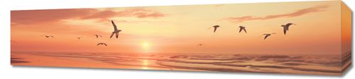Obraz z serii pejzaże zatytułowany Spokojna Przystań przedstawia idylliczny wschód słońca nad morzem, gdzie złociste promienie światła tańczą po delikatnie falującej powierzchni wody. Sylwetki mew unoszących się na ciepłym powietrzu dodają uczucia wolności i bezkresu. Rozmyte odbicia ptaków na mokrym piasku nadmorskim wzbudzają uczucie spokoju i kontemplacji. Ten obraz jest kwintesencją ukojenia, idealny do wnętrz o tematyce nadmorskiej, czy to w prywatnych rezydencjach pragnących złapać oddech od miejskiego zgiełku, jak i w przestrzeniach wellness, spa, czy hotelowych lobby, gdzie głównym celem jest relaks i odprężenie.