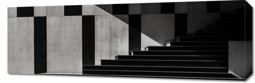 Obraz z serii pejzaże zatytułowany Geometria w Architekturze. Zjawiskowy kontrast światła i cienia na geometrycznych formach stwarza iluzję głębi i perspektywy, zachęcając widza do zadumy nad interakcją przestrzeni i światła. Czyste linie i wyraźne kontrasty doskonale komponują się z nowoczesnymi, minimalistycznymi oraz industrialnymi wnętrzami. Idealny dla przestrzeni biurowych, loftów oraz jako element dekoracyjny w galeriach sztuki współczesnej.