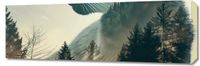 Obraz z serii natura zatytułowany Koci Duch Lasu. Ten obraz prezentuje zaskakującą kompozycję, w której sylwetka czarnego kota płynnie przechodzi w mglisty krajobraz leśny, łącząc świat zwierzęcia z dziką przyrodą. Złote i ciepłe odcienie jesiennego lasu w tle kontrastują z chłodnymi tonami gór, dodając głębi i tajemniczości. Mistyczne połączenie kota z naturą symbolizuje jedność i harmonię między żywymi istotami a otoczeniem, a także podkreśla dziką i niezależną naturę kota. Obraz idealnie nadaje się do przestrzeni mieszkalnych ceniących połączenie sztuki z naturą, takich jak nowoczesne salony, pokoje relaksacyjne lub gabinety, jak również może być inspirującym elementem dekoracyjnym dla gabinetów weterynaryjnych lub przychodni zoologicznych.