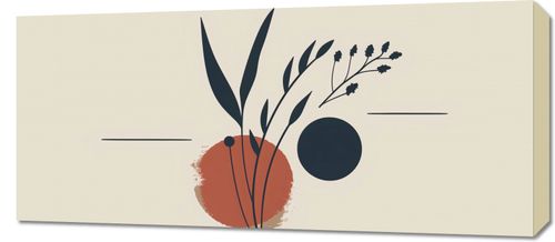 Obraz z serii boho zatytułowany Botaniczna Barwa. Grafika prezentuje stylizowany, graficzny bukiet natury, uchwycony w prostej, lecz wyrafinowanej kompozycji. Elementy roślinne w tonacji głębokiego granatu kontrastują z ciepłymi odcieniami terrakoty i spokojnym tłem, tworząc eleganckie połączenie barw i kształtów. Geometryczne formy i linie tworzą poczucie porządku i współczesnej estetyki. Ten obraz będzie się doskonale prezentował w nowoczesnych biurach, minimalistycznych salonach lub jako subtelny akcent w jasnych, przestronnych kuchniach. Doskonale odnajdzie się również w przestrzeniach komercyjnych, takich jak kawiarnie lub butiki, wprowadzając sztukę w codzienne otoczenie.