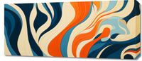 Obraz z serii abstrakcja zatytułowany Oceaniczne Fale. Hipnotyzujący wir barw przypominający przemieszczające się fale oceanu, w których błękit miesza się z głęboką granatową otchłanią i akcentami ciepłego, płonącego ognia. Te złożone wzory płynnie przechodzą w jedną całość, tworząc wizualny spektakl, który zaprasza do głębokiej kontemplacji. Kontrastujące kolorowe pasma dodają obrazowi dynamiki i witalności. Doskonale sprawdzi się w nowoczesnych biurach o minimalistycznym wnętrzu oraz w przestrzeniach publicznych, takich jak galerie sztuki czy kawiarnie o awangardowym designie.