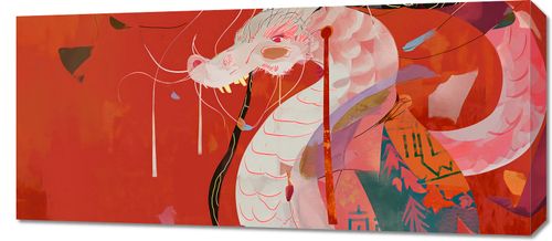 Obraz z serii motywy wschodnie zatytułowany Orientacyjny Smok, przedstawia kreatywną i nowoczesną interpretację tradycyjnego azjatyckiego smoka. Użyto bogatej palety czerwieni i pomarańczy, aby nadać energię i pasję scenie, a delikatne przerywane linie i formy abstrakcyjne dodają dziełu dynamiki i współczesnego charakteru. Smok, przedstawiony z otwartą paszczą i dzikim spojrzeniem, wydaje się ryczeć, a jego ciało płynnie przepływa przez kompozycję, tworząc wrażenie ruchu i siły. Tło, na którym pojawiają się subtelne nawiązania do wschodniej architektury i symboliki, wzmacnia kulturowe korzenie motywu. Ten obraz będzie idealnym uzupełnieniem współczesnych przestrzeni, które czerpią z tradycji i łączą je z nowoczesnym designem, takich jak salony w stylu fusion, przestrzenie kulturowe, a także restauracje i salony, gdzie chce się wprowadzić element orientalnego ducha.