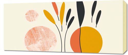 Obraz z serii boho zatytułowany Słoneczne Refleksy.Obraz czerpie z esencji natury i prostoty, przedstawiając stonowane, ale zarazem żywe kształty i linie roślin. Geometryczne kształty w ciepłej palecie barw - od głębokiego pomarańczu do delikatnego żółcienia - są wyróżnione na tle stonowanego beżu, tworząc wrażenie słońca i jego łagodnego światła rozpraszającego się w naturze. Dzieło to będzie pięknie komponować się z jasnymi, przestronnymi wnętrzami, wnosząc do nich poczucie ciepła i optymizmu. Idealnie nadaje się do dekoracji ściennej w salonach, jadalniach lub przestrzeniach oczekujących, gdzie może dodać odrobinę życia bez dominowania nad całością aranżacji. Zapewni lekki, ale wyrazisty akcent, który może inspirować i przynieść radość każdego dnia.