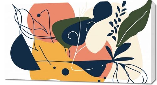Obraz z serii minimalistyczne zatytułowany Dynamika Wizji. Grafika prezentuje żywą kompozycję abstrakcyjnych kształtów i linii, które tworzą energiczny, ale harmonijny obraz. Kolorystyka oscyluje wokół ciepłych tonów pomarańczu, żółci i bieli, z akcentami głębokiej zieleni, co nadaje pracy witalność i świeżość. Idealnie sprawdzi się jako ożywczy element w przestrzeniach minimalistycznych, takich jak nowoczesne biura, kreatywne studia, czy też domowe atelier. Może stanowić też centralny punkt w pomieszczeniach o stonowanej kolorystyce, przynosząc energię i ciepło do wnętrza. Wprowadzi dynamizm do każdej przestrzeni, zachowując przy tym poczucie elegancji i współczesnego designu.