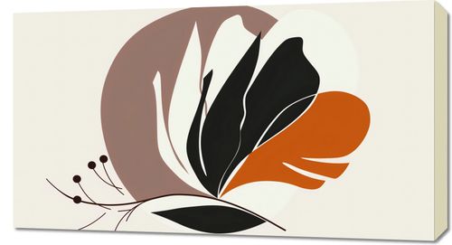 Plakat z serii minimalistyczne zatytułowany Elegancja Roślinna. Grafika ta to abstrakcyjna interpretacja roślinności, przedstawiająca stylizowane liście i kwiaty w spokojnej palecie barw - głębokiej czerni, ciepłej terakoty oraz miękkich beżów. Zarysy liści są wyraźne, a ich formy przypominają naturalny ruch, co nadaje plakatowi życie i delikatność.Ten obraz doskonale odnajdzie się w eleganckich i uporządkowanych wnętrzach, które cenią sobie czystość formy i neutralną kolorystykę. Idealnie nadaje się do przestrzeni takich jak salony, recepcje hotelowe lub prywatne gabinety, gdzie może stanowić główny punkt artystyczny, jednocześnie wprowadzając element spokoju.