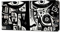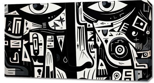 Obraz z serii abstrakcja zatytułowany Labirynt Myśli. Intrygujące oczy spoglądające z głębi obrazu są otoczone złożonymi wzorami i symbolami, które łączą się, tworząc enigmatyczny portret. Czarno-białe barwy kontrastują ze sobą, dodając dziełu intensywności i głębi. Złożoność wzorów symbolizuje skomplikowane myśli i emocje, które kryją się za ludzkim spojrzeniem. Świetnie sprawdzi się w nowoczesnych biurach, galeriach sztuki oraz w przestrzeniach przeznaczonych dla miłośników abstrakcyjnej ekspresji.