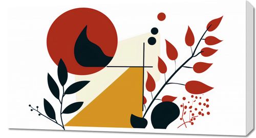 Obraz z serii minimalistyczne zatytułowany Ogień i Flora. Prezentuje on minimalistyczne przedstawienie płomienia, które łączy się z delikatnymi roślinnymi motywami. Wykorzystane kolory - głęboka czerwień, czarny i odcienie beżu oraz żółci - tworzą silny wizualny kontrast, dodając dziełu dramatyzmu. Obraz ten idealnie nadaje się do wnętrz o ciepłej kolorystyce, które chcą dodać wyrazistości swojej przestrzeni. Może być pięknym uzupełnieniem salonu, przestrzeni jadalnej czy holu, wniosąc do nich energię i życie. Jego uniwersalne motywy roślinne sprawią, że będzie on pasował do wielu różnych stylów dekoracji wnętrz, od nowoczesnych po bardziej tradycyjne.