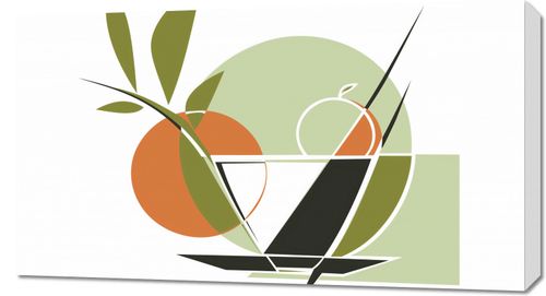 Obraz z serii minimalistyczne zatytułowany Owocowa Herbata. Prezentuje on wyrafinowaną grę form i kształtów, które przywodzą na myśl świeżość i soczystość owoców. Gładkie krzywizny i ostre linie łączą się tworząc nowoczesną kompozycję w palety kolorów zieleni, pomarańczy oraz czerni na delikatnym tle. Obraz ten doskonale wpasuje się w jasne kuchenne wnętrza, jadalnie lub nowoczesne przestrzenie kawiarniane, gdzie może stanowić żywy i pobudzający akcent. Jest to również idealny wybór do wnętrz, które poszukują lekkiego, ale wyrazistego elementu dekoracyjnego, dodającego charakteru i żywego ducha natury.