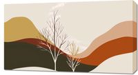 Obraz z serii minimalistyczne zatytułowany Pustynia Widzi. Obraz ukazuje dwie subtelne, ogołocone z liści drzewa, które wyłaniają się z miękkich, falujących form pustynnych wydm. Barwy są stonowane, z dominującymi odcieniami brązu, beżu i terakoty, co oddaje ciepłą i suchą atmosferę pustyni. Tło zawiera tekstury, które mogą przypominać piasek lub delikatną gęstwinę. Ten obraz doskonale sprawdzi się jako dodatek do wnętrz w stylu natur, dodając im ziemiściej palety i przywołując poczucie spokoju oraz prostoty. Będzie się dobrze komponować w przestrzeniach takich jak salon, pokój relaksu, a nawet biuro, wprowadzając elementy spokojnego krajobrazu, które mogą inspirować i uspokajać.